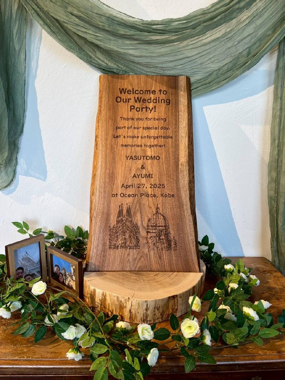 温もりと洗練を刻む、特別なウエディングのためのレーザー彫刻ウェルカムボードをオーダー制作いたしました。